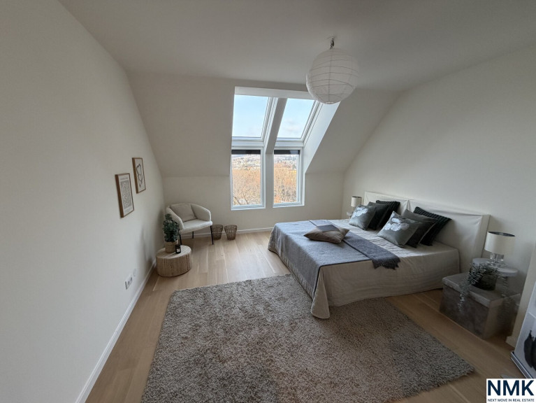 Diese hochwertig ausgeführte 3-Zimmer-Dachgeschosswohnung überzeugt durch einen perfekt durchdachten Grundriss, der jeden Quadratmeter optimal nutzt. Der großzügige Wohn-Ess-Bereich öffnet sich direkt zur sonnigen Terrasse mit unverbaubarem Weitblick ins Grüne - ein echtes Highlight mit Blick Richtung Kahlenberg.