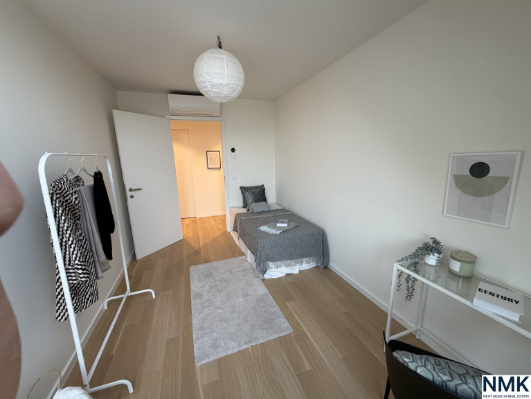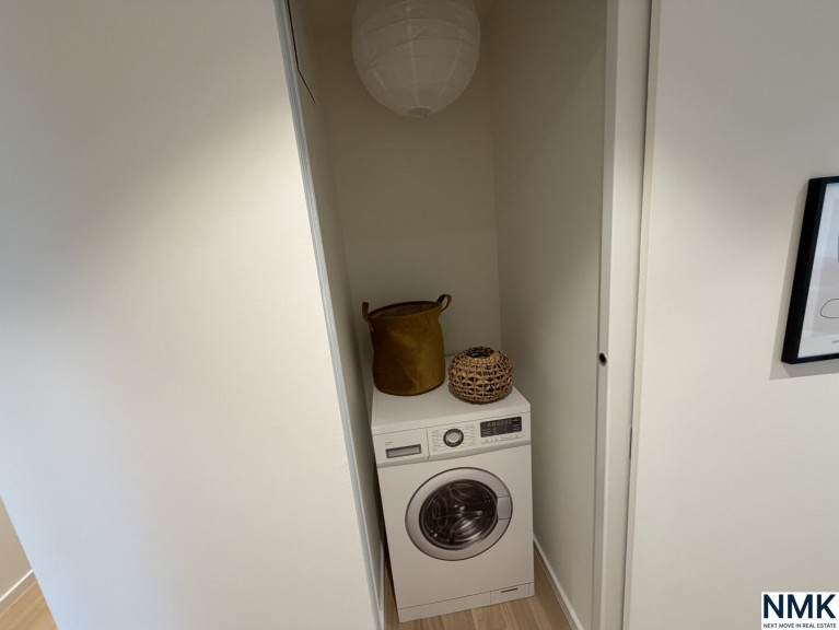 Zwei ruhig gelegene Schlafzimmer, ein elegantes Badezimmer sowie zusätzlicher Stauraum inklusive Platz für Waschmaschine und Haushaltsgeräte sorgen für hohen Wohnkomfort und Alltagstauglichkeit. Großzügige Fensterflächen bringen viel Licht in alle Räume und unterstreichen das offene, moderne Wohngefühl.