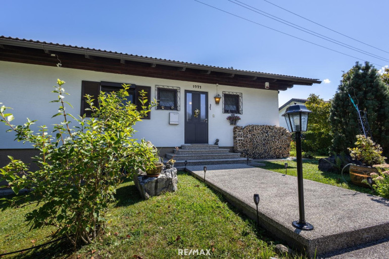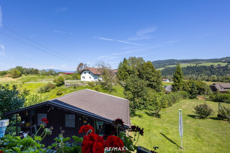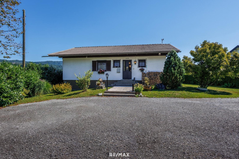 Wohnen mit Drau-Blick in Maria ElendDieser Bungalow mit rund 2.900 m² Garten bietet viel Platz für Familie, Hobbys und Erholung. Vom Wohnzimmer aus gelangen Sie direkt auf die Terrasse und den Balkon – mit wunderschönem Blick über die Drau.
