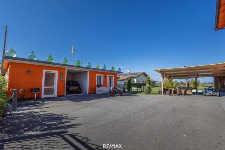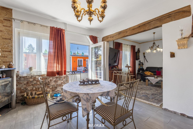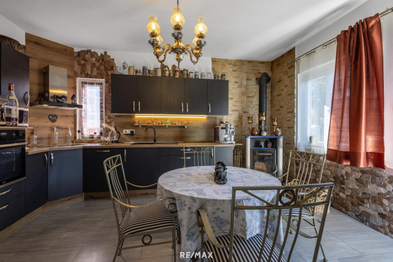Dieses charmante Doppelhaus bietet zwei eigenständige Wohnungen mit ca. 70 m² pro Geschoss, großzügige Eckflächen, einen Innenhof, Lagerräume, Garage und Außenlager. Auf dem Grundstück befindet sich ein kleiner Merlot-Weinberg und Bauland.- EG-Wohnung: 1 Schlafzimmer, 1 Bad, Wohnküche, Zugang zum Innenhof mit Lounge, Außendusche und Garten