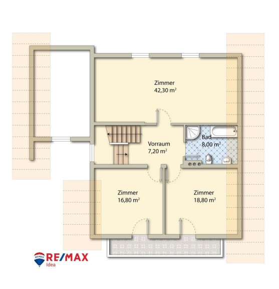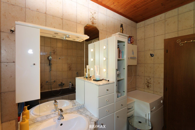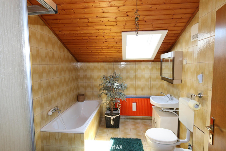 * OG: Vorraum, 2 Zimmer mit Balkon, 1 riesiges Zimmer, Bad mit Badewanne, Dusche und WC