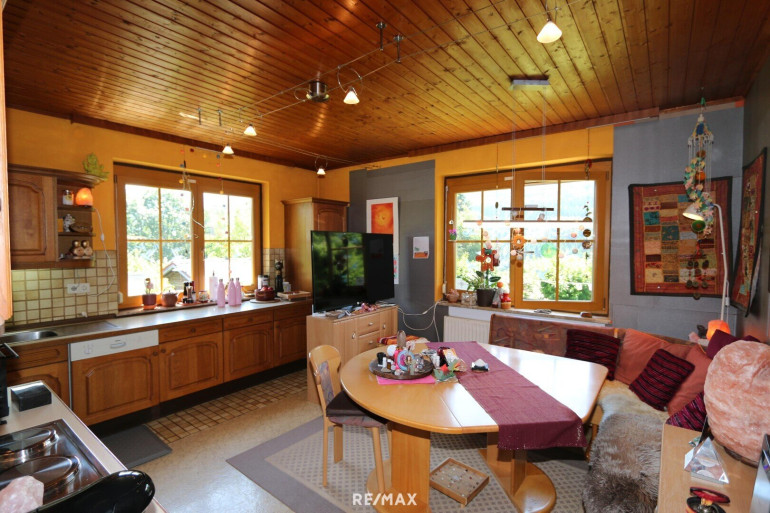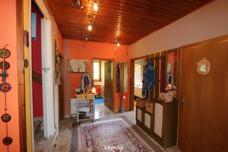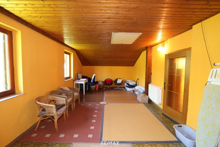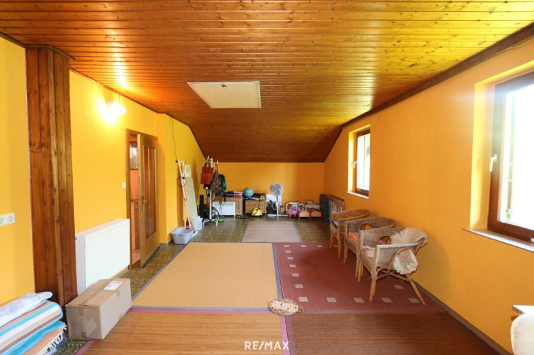 * KG: Vorraum, 2 Lagerräume, 1 alte "Selch" (Räucherkammer), 1 großer Lagerraum (Holz) mit Heiztechnik und Tankraum