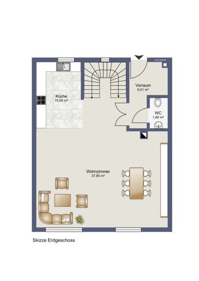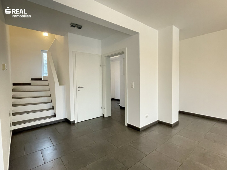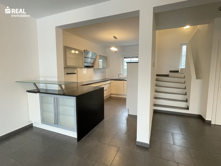 Familienfreundliches Wohnen mit durchdachter Raumaufteilung: Im Erdgeschoss erwartet Sie ein offener, großzügiger Wohn- und Essbereich mit moderner Küche – der ideale Mittelpunkt für das tägliche Familienleben. Große Fensterflächen sorgen für viel Licht und verbinden den Wohnraum harmonisch mit der Terrasse und dem Garten, der Richtung See ausgerichtet ist. Zusätzlich befinden sich hier ein Vorzimmer sowie eine Gästetoilette.