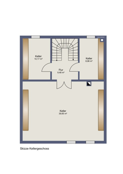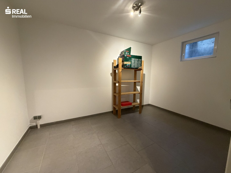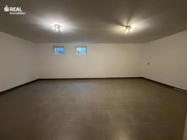 Der beheizte Keller bietet weit mehr als klassischen Stauraum: Ein großer Raum mit zwei kleineren Fenstern, ein weiterer kleiner Raum sowie ein Technikraum eröffnen vielfältige Nutzungsmöglichkeiten – etwa als Homeoffice, Hobby- oder Fitnessraum, Spielbereich oder Rückzugsort für Jugendliche.