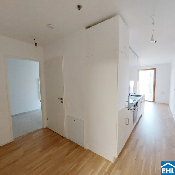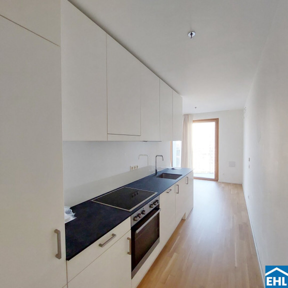 Die Wohnung selbst befindet sich im 10. Obergeschoß und verfügt über einen großzügigen, gut aufgeteilten Wohnraum mit vollausgestatteter Küchenzeile, ein Badezimmer mit Dusche, eine separates WC, sowie einen Vorraum. Der nordseitig ausgerichtete Balkon rundet das Wohnerlebnis perfekt ab.