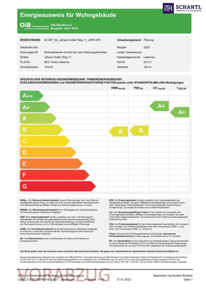 | Heizwärmebedarf: | B 35,80 kWh/m²a |