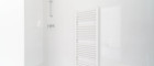 - Badezimmer mit Dusche, Waschbecken und Waschmaschinenanschluss