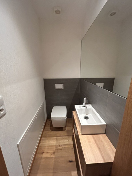 Eichen-Dielenböden, stumpf einschlagende Eichentüren und 3-fach verglaste Kunststofffenster unterstreichen den hochwertigen Anspruch dieser Wohnung. Die Fußbodenheizung sorgt für gleichmäßige Wärme, die moderne Luftwärmepumpe für Effizienz und niedrige Betriebskosten. Ruhig, nachhaltig und zukunftssicher.