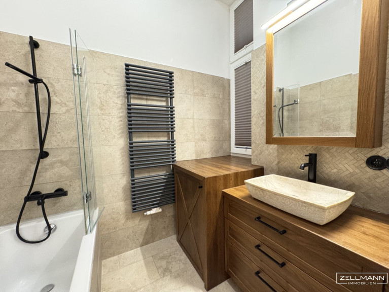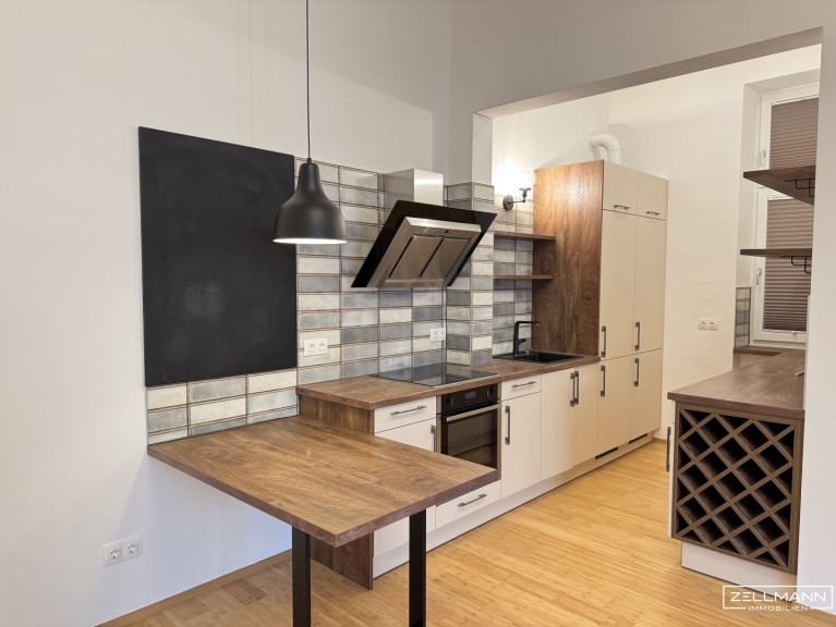 Über eine Sicherheitstüre betritt man eine geschmackvoll sanierte Wohnung mit 58 m². Über das geräumige Vorzimmer gelangt man zur separaten Toilette (ausgestattet mit einem Handwaschbecken und einem Fenster) sowie einem Badezimmer. Das Badezimmer besteht aus einer Badewanne mit einer praktischen Duschwand, einem luxuriösen und geschmackvollen Waschbecken mit einem tollen Unterschrank und einem traumhaften Spiegelschrank, einem Handtuchwärmer sowie einem Fenster. Weiteres gelangt man in ein großzügig angelegtes Wohnzimmer mit vielen Fenstern mit Blick in einen grünen Innenhof. Die hochwertig ausgestattet Küche, die keine Wünsche offen lässt, befindet sich im Wohnzimmer, ist aber dennoch ein bisschen separiert. Weiteres gelangt man zu einem Schlafzimmer, das mit einer Breite von 2m einen vollwertigen Raum darstellt.