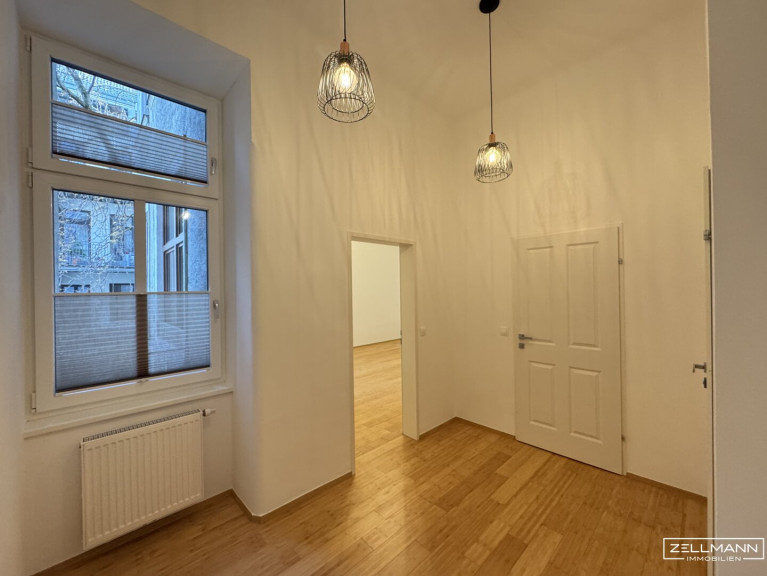 Im Vorzimmer, Bad, Toilette und der Küche gibt es exklusive Beleuchtungskörper. Sowohl im Schlafzimmer als auch im Wohn- und Esszimmer wurde der hochwertige Parkettboden restauriert, sodaß der Charme des Altbaus erhalten bleibt. In der gesamten Wohnung wurden neue Kunststoff-Fenster mit Isolierverglasung eingebaut. Ebenso sind hochwertige Innenjalousien montiert.