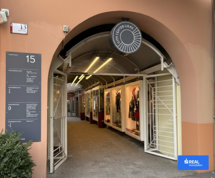 Dieses ca. 76 m² große Geschäftslokal befindet sich direkt am Eingang im Erdgeschoss des City Centers in Lienz und bietet eine Verkaufsfläche von rund 48 m² sowie einen zusätzlichen Raum für Büro/Lager und eine praktische Kühlkammer.