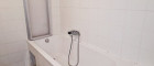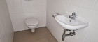 + Badezimmer mit Badewanne, Waschtisch und Waschmaschinenanschluss