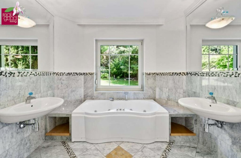 Parkett, Fliesen, Steinboden, Gas, Solarenergie, Kamin, Zentralheizung, Fußbodenheizung, Einbauküche, Wohnküche / offene Küche, Ostbalkon, Südbalkon, Westbalkon, Bad mit Fenster, Badewanne, Dusche, DV-Verkabelung, Kabel/Satelliten-TV, Garage, Parkplatz, Sicherheitskamera, Swimmingpool, Alarmanlage, Sauna