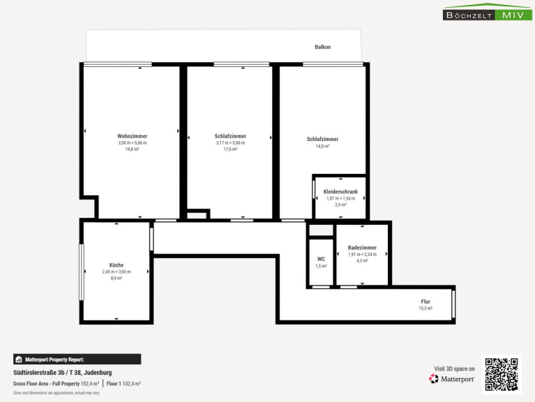 - ca. 12,54 m² Balkon / Loggia