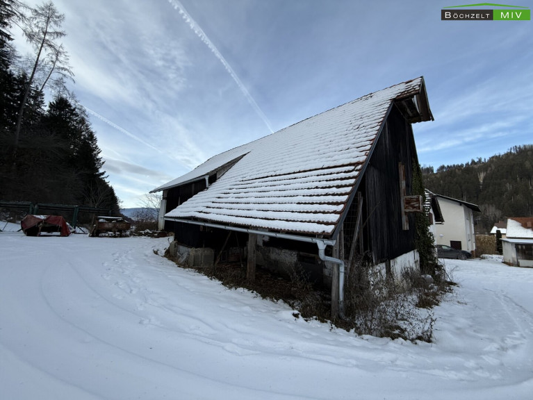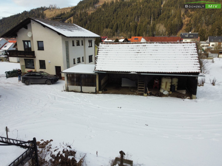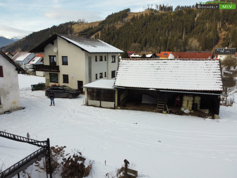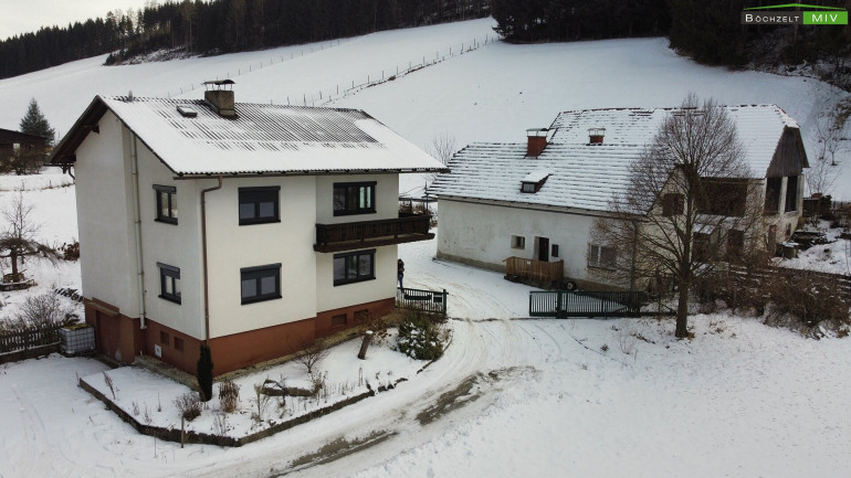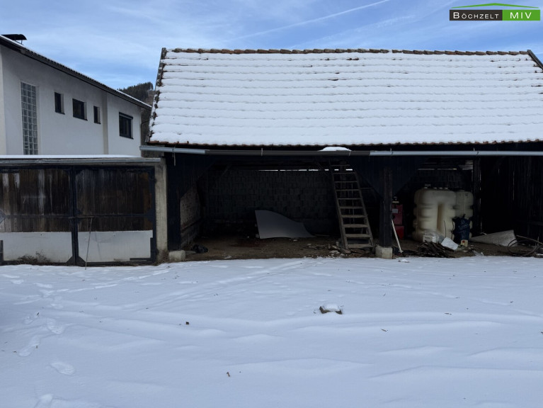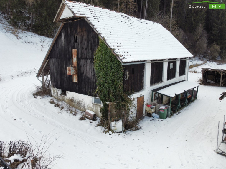 Die Liegenschaft besteht grundsätzlich aus dem 1977 errichteten und 2025 sanierten Wohngebäude, einer Einzelgarage mit angeschlossenem Carport und darüberliegendem Lagerraum, dem ehemaligen Wohngebäude, sowie dem Stallgebäude samt darüberliegender Heuberge.