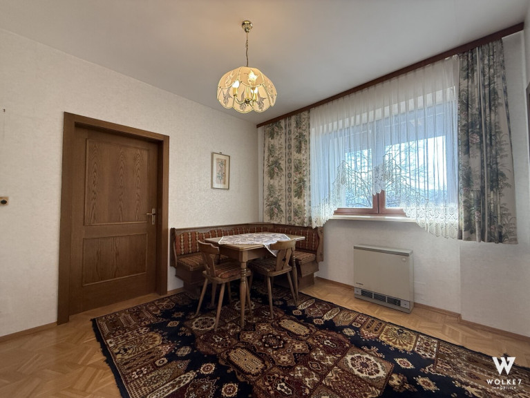 Im Obergeschoss befinden sich drei separat begehbare Zimmer plus ein großzügiger Vorraum mit Sitzecke. Zusätzlich stehen ein Badezimmer mit Badewanne sowie ein separates WC zur Verfügung.