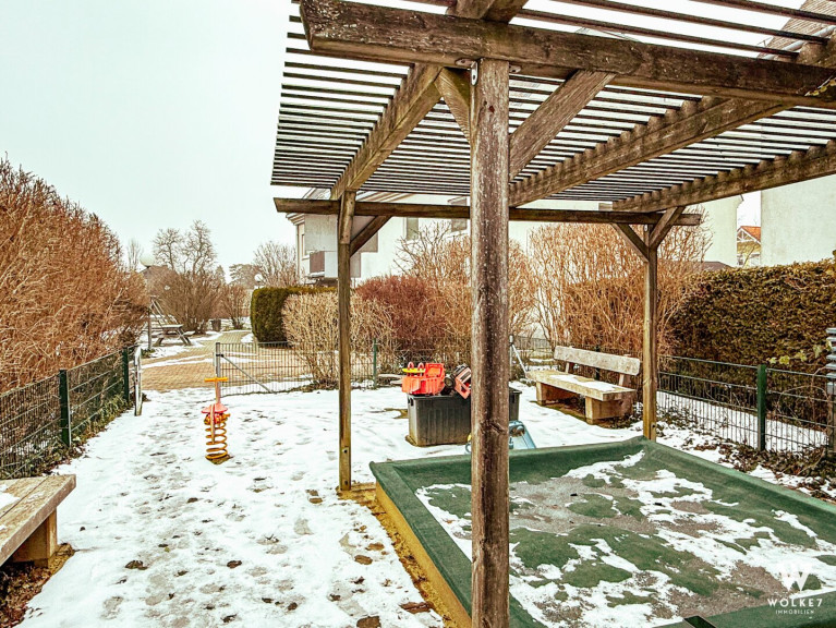 Diese großzügige Maisonette-Wohnung vereint ruhiges Wohnen im Grünen und eine durchdachte Raumaufteilung mit viel Platz für Familie, Homeoffice und Freizeit. Zwei Terrassen erweitern den Wohnraum ins Freie, während die weitläufigen Gemeinschaftsflächen und Spielplätze ein echtes Zuhause-Gefühl schaffen. Hier wohnt man entspannt – mit allem, was man im Alltag braucht, in angenehmer Nähe.