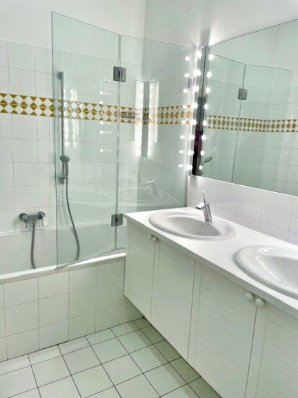 - Bad mit Fenster, 2 Handwaschbecken mit Unterschrank, beleuchteten Spiegel-Wand, Badewanne mit Duschtrennwand- NEU !