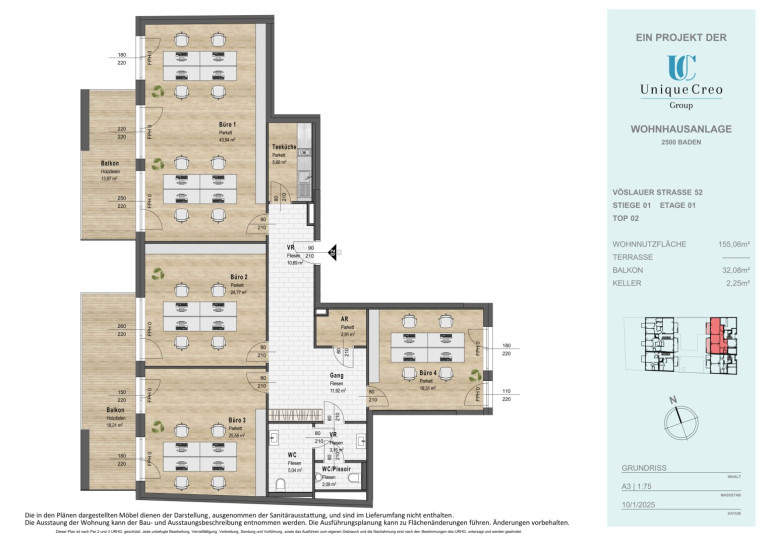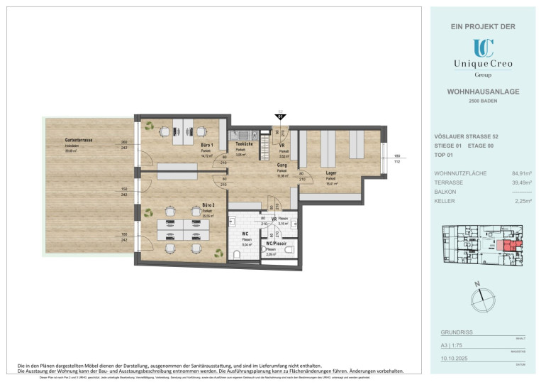 Die Unique Creo Group realisiert ein hochwertiges Neubauprojekt in bester Lage von Baden, das neben exklusivem Wohnraum auch repräsentative Gewerbeeinheiten bietet.