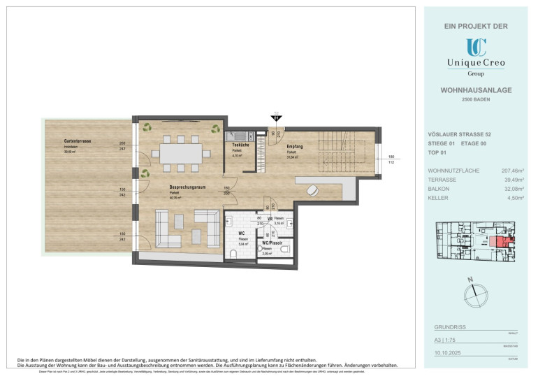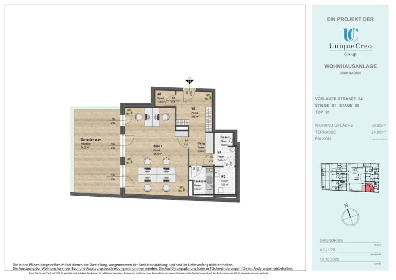 Die Unique Creo Group realisiert ein hochwertiges Neubauprojekt in bester Lage von Baden, das neben exklusivem Wohnraum auch repräsentative Gewerbeeinheiten bietet.