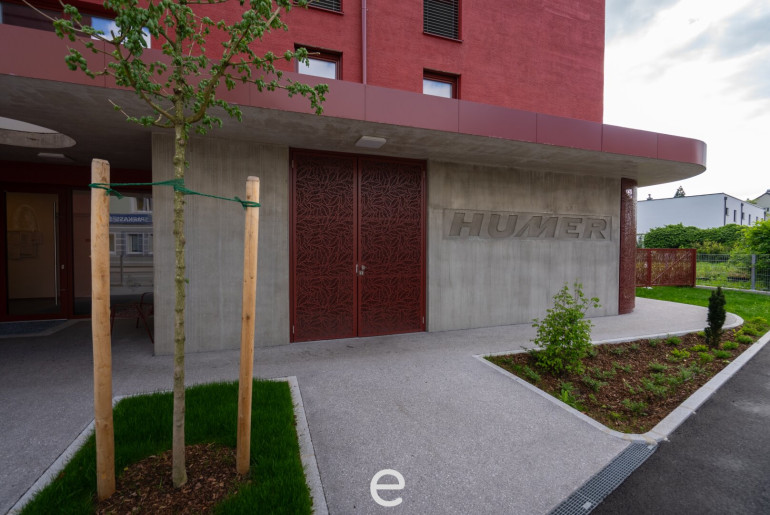 Die markante Farbe gibt dem Wohngebäude eine eigene Identität und die Wohnung vereint zeitgemäße Architektur, offene Grundrissgestaltung und lichtdurchflutete, hohe Wohnräume zu einem Wohngefühl der Extraklasse.