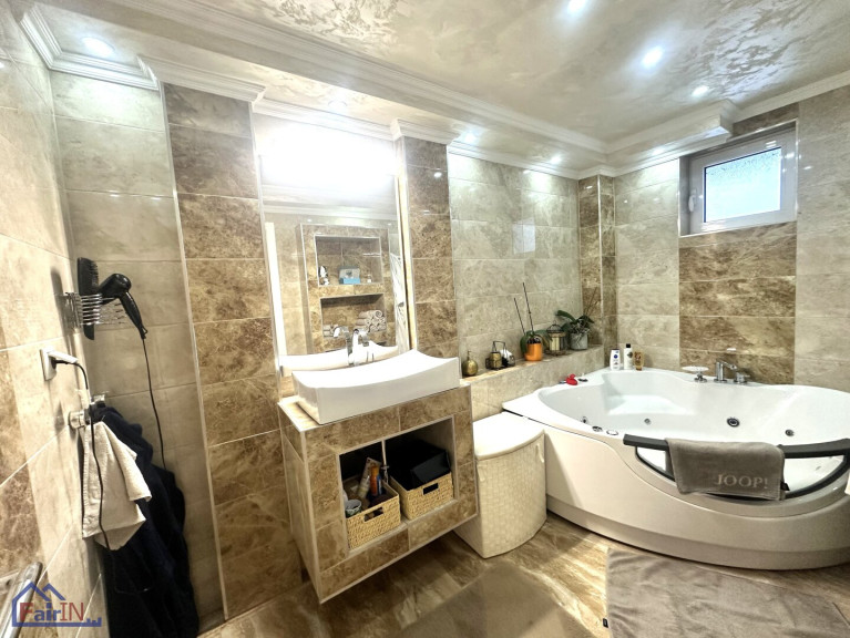 Die Ausstattung der Wohnung lässt keine Wünsche offen. Hochwertige Fliesen und edles Parkett verleihen den Räumen einen eleganten Charme. Die moderne Einbauküche ist funktional und ideal für Hobbyköche, während die Badezimmer mit Fenster, Badewanne und Dusche sowohl praktisch als auch stilvoll gestaltet sind. Zudem sorgen drei WCs für zusätzlichen Komfort, insbesondere in einem Mehrfamilienhaus.