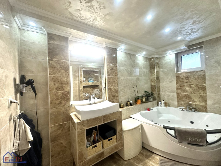 Die Ausstattung der Wohnung lässt keine Wünsche offen. Hochwertige Fliesen und edles Parkett verleihen den Räumen einen eleganten Charme. Die moderne Einbauküche ist funktional und ideal für Hobbyköche, während die Badezimmer mit Fenster, Badewanne und Dusche sowohl praktisch als auch stilvoll gestaltet sind. Zudem sorgen drei WCs für zusätzlichen Komfort, insbesondere in einem Mehrfamilienhaus.
