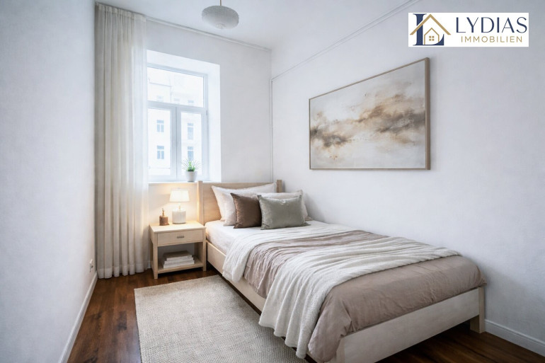 Zur Information: Die Abbildung des Wohnzimmers und des Schlafzimmers wurde virtuell gestaltet und dient der Veranschaulichung. Die Originalfotos befinden sich ebenfalls im Inserat.