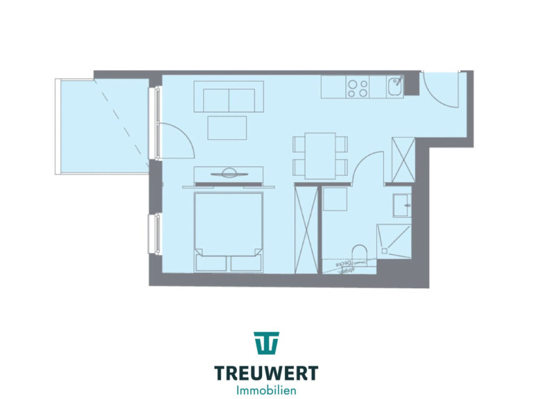 Kompakte 2-Zimmer-Lösung mit praktischem Grundriss