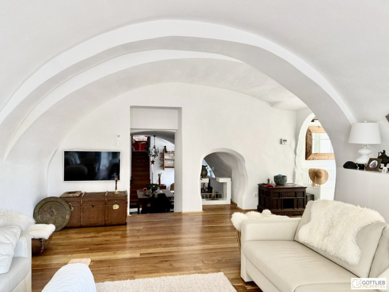 Etwas unterhalb der Bellevue Höhe in Grinzing, einem Bezirksteil des 19. Wiener Gemeindebezirks Döbling, gelangt zum sofortigen Verkauf eine absolut ruhig gelegene, charmante 3-Zimmer-Wohnung mit historischem Deckengewölbe, Weinkeller und Eigengarten. Das Objekt befindet sich in einem denkmalgeschützten ehemaligen Winzerhaus mit unterkellerten Seitenteilen, dessen Kern aus dem 16. Jahrhundert stammt und welches in der zweiten Hälfte des 18. Jahrhunderts umgebaut wurde. In den Jahren 2008 und 2009 wurde das gesamte Anwesen liebevoll generalsaniert, Wohnungen errichtet und das historische Erscheinungsbild behutsam renoviert.