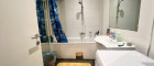 Badezimmer: Modernes Bad mit Badewanne und Waschbecken – kompakt und funktional.