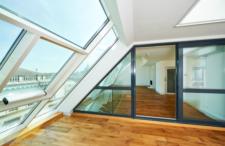 Dieses außergewöhnliche Penthouse zählt zweifellos zu den exklusivsten Dachgeschossresidenzen Wiens. Auf mehreren Ebenen entfaltet sich eine private Wohnwelt von beeindruckender Großzügigkeit – geprägt von monumentalen Raumhöhen, großflächigen Panoramaverglasungen und einem architektonischen Konzept, das Licht, Weite und Ausblick in den Mittelpunkt stellt.