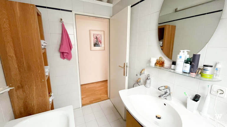 - Badezimmer: mit Dusche, Waschmaschine und Fenster