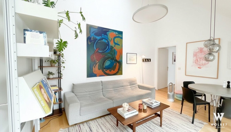 Auf ca. 69 m² entfaltet sich ein durchdachter, zentral erschlossener Grundriss mit drei separat begehbaren Räumen. Der vorhandene Höhenraum wurde intelligent genutzt: Über dem Arbeitszimmer befindet sich eine integrierte Schlafebene, die zusätzliche Fläche schafft, ohne den Wohnraum einzuschränken. Die vorhandene Einbauküche ist funktional eingebettet, ein Kellerabteil ergänzt das Angebot sinnvoll. Die Umgebung bietet alles, was urbanes Leben ausmacht; die Mariahilfer Straße liegt nur wenige Minuten entfernt, ebenso kulturelle Fixpunkte wie das Apollo Kino oder das Haus des Meeres. Der Naschmarkt, der Esterházypark sowie die U3 Neubaugasse und U4 Kettenbrückengasse sorgen für perfekte Nahversorgung, Erholung und Anbindung.