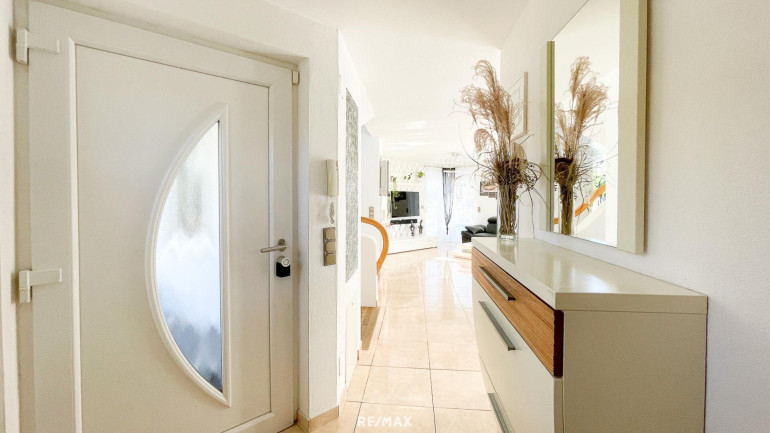 zentraler Vorraum mit Zugang zu Wohnraum und extra Toilette mit Handwaschbecken