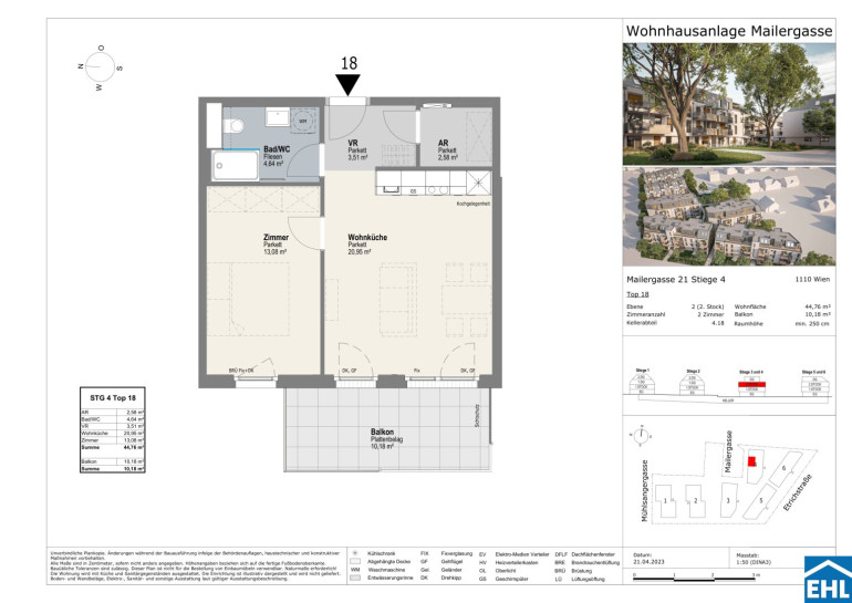 Der großzügige Grundriss umfasst ein helles Wohnzimmer mit offener Küche, ein getrennt begehbares Schlafzimmer, ein modernes Badezimmer mit Dusche/WC/Waschmaschinenanschluss sowie einen Vorraum. Der Balkon lädt zum gemütlichen Verweilen ein und rundet das Wohnerlebnis perfekt ab.