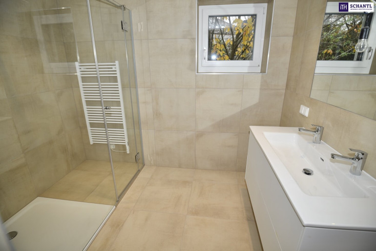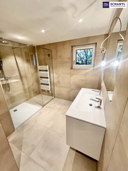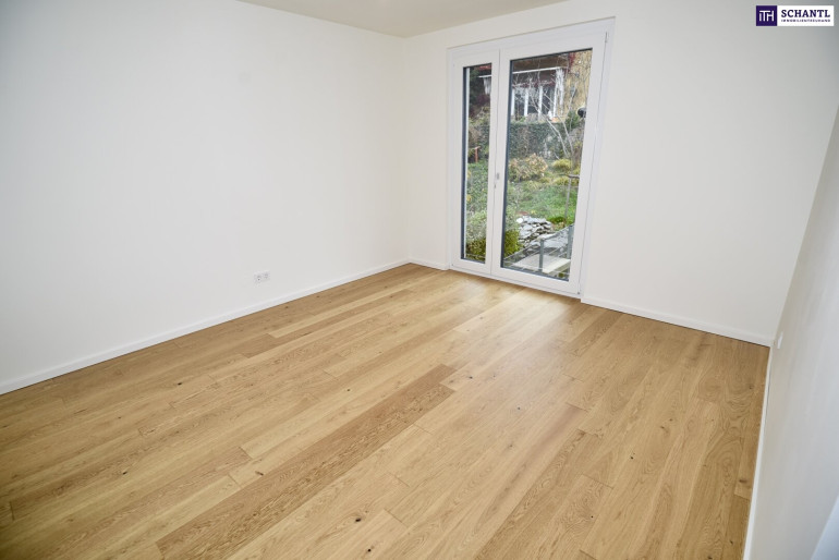 Diese Wohnung ist ein echtes Unikat: Mit zwei Eigengärten, einer großen Terrasse, einem Balkon sowie Panorama-Fensterfronten in der Wohnküche erleben Sie hier Freiraum, Licht und Natur wie sonst nur im eigenen Haus – und das mitten in Dornbach.