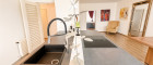 Die moderne Küche bietet viel Arbeitsfläche und fügt sich harmonisch in den Wohn- und Essbereich ein.
