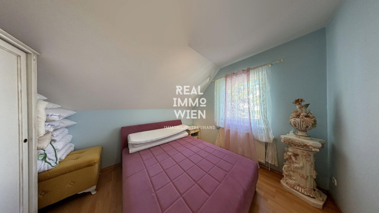 Dieses Einfamilienhaus befindet sich auf einem Grundstück von rund 619 m² und verfügt über eine Wohnfläche von ca. 128,01 m², die sich auf zwei Ebenen, mit fünf Zimmer verteilt. Das Erdgeschoss umfasst Küche, Vorzimmer, Schlafzimmer, Vorraum und WC. Zusätzlich gehören eine Loggia mit ca. 6,78 m², eine Terrasse, ein großzügiger Vollbetonkeller mit ca.75,27 m² sowie eine Garage mit ca. 96 m² zum Haus. Im Dachgeschoss befinden sich 3 weitere Schlafzimmer, mit einem Aufgang zu dem Dachboden. Für angenehmen Wohnkomfort sorgt die Fußbodenheizung im Erdgeschoss. Ein Holzkamin ist in Betrieb und sorgt für eine gemütliche Atmosphäre. Die Beheizung erfolgt über eine Gaszentralheizung mit einem Vaillant Heizkessel und einem Warmwasserspeicher mit 150 Litern Fassungsvermögen. Im Garten stehen verschiedene Obstbäume wie Apfel, Birne, Zwetschke und Quitten, die den Außenbereich besonders reizvoll machen.