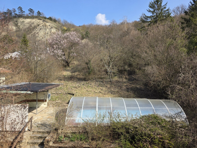 - Brunnen, Gartenhütte und Pool mit Luftwärmepumpe
