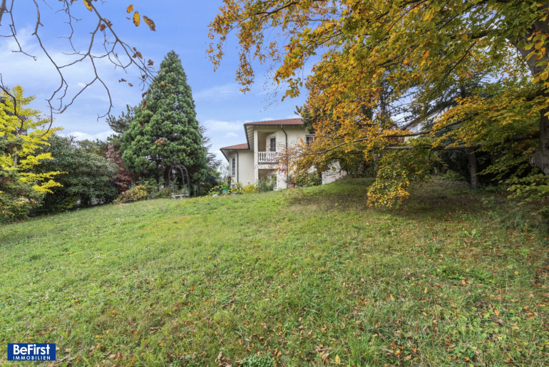 Diese extravagante Villa besticht neben der großzügigen Raumgestaltung allen voran durch einen traumhaften Grünblick. Mit ihrem besonderen Charme bietet diese Immobilie ideale Bedingungen für Familien. Neben rd. 160m2 Wohnfläche, 2 zauberhaften Terrassen und herrlichem Garten besteht die Option zusätzliche Wohnfläche im UG mit separatem Zugang in den wunderschönen Garten zu generieren. Hier benötigt es eine Erweiterung der Heizung und dem Einbau von Sanitärbereichen.Die Villa wurde 1996 in Ziegelmassiv Bauweise errichtet. Die Fenster und Terrassentüren verfügen allesamt über Außenjalousien.Beheizt wird über Gas/Fußbodenheizung und alternativ über eine prachtvollen 3-seitigen Kachelofen (Wohnsalon, Speisezimmer, Küche). Für die Böden wurden hochwertigste Materialien gewählt.