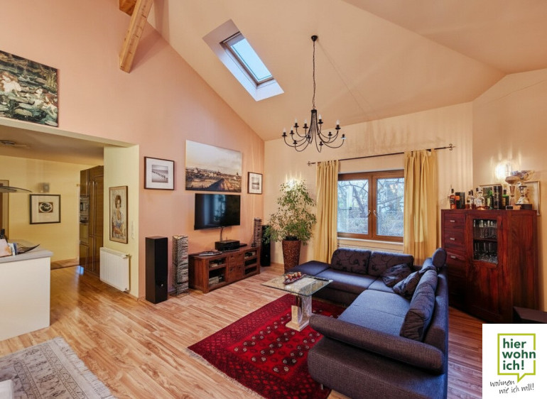 Großzügiger Wohn-Essbereich mit viel Lichteinfall (zusätzliches Dachfenster).