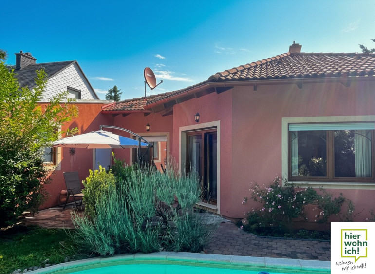 Moderner Bungalow für mediterranes Lebensgefühl in Tribuswinkel: 4 Zimmer, Terrasse, Garten & Pool