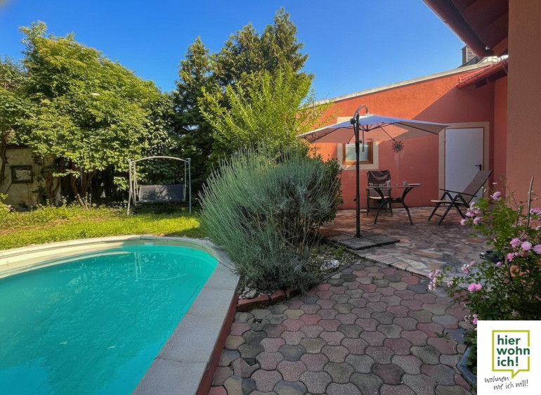 Besonderheiten: Pool, Nebengebäude (Werkstatt/Keller), West-Ausrichtung, Ziegelmassivbau.