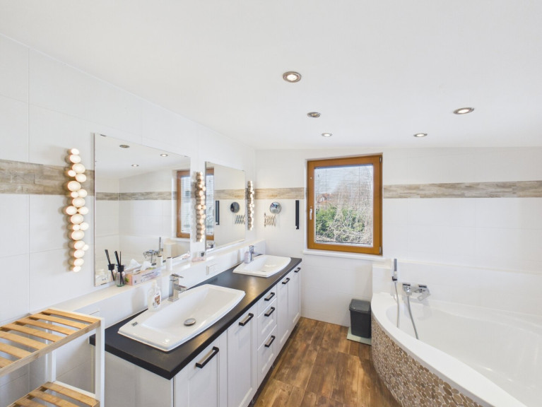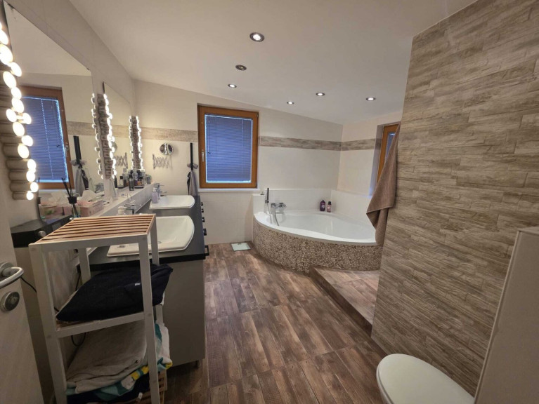 Das Haus verfügt über ein modernes Bad, das sowohl mit einer Badewanne als auch mit einer Dusche ausgestattet ist, sodass Sie sich nach einem langen Tag perfekt entspannen können.