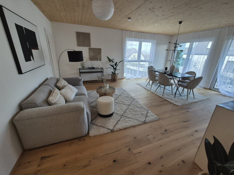 Zur Veräußerung gelangen insgesamt 5 Neubauwohnungen mit jeweils 2 bis 4 Zimmer und einer Fläche von ca. 65 m² bis 91 m² Größe, Baujahr 2023 in Gebäuden mit ökologischer Massivholz und Holzriegelkonstruktion.
