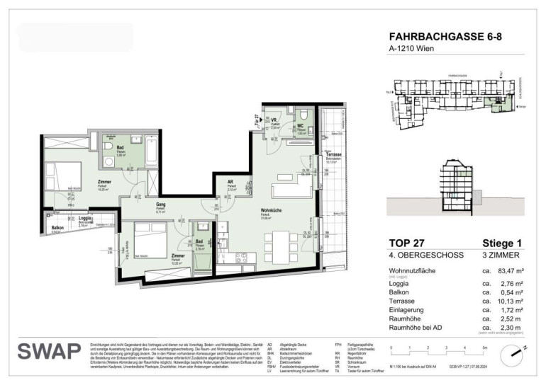 STIEGE 1 | TOP 27 - 3-Zimmer mit ca. 83 m² Wohnfläche plus Terrasse und Balkon im 4. Liftsock: