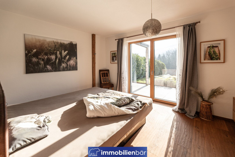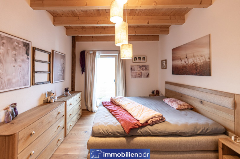 Dein Hideaway und gleichzeitig dein Zuhause wie aus dem Bilderbuch. Ein Ort der Heimkehr für Menschen, die bewusst wohnen und dem Alltag Raum zur Entschleunigung geben möchten. Dieses Landhaus im Chaletstil in Haibach steht für ein Wohngefühl, das Ruhe, Qualität und Natur verbindet.