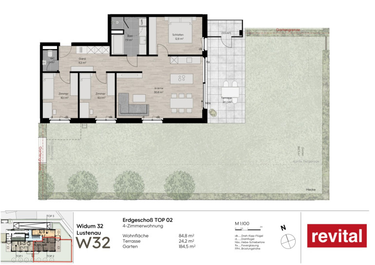 Widum 32 in Lustenau zeichnet sich durch die hervorragende Infrastruktur aus. Einkaufsmöglichkeiten, Schulen, Restaurants und Freizeiteinrichtungen befinden sich in unmittelbarer Nähe. Sowohl das Ortszentrum als auch Naherholungsgebiete sind bequem erreichbar. Zudem ist die Lage für Pendler in die Schweiz bestens geeignet.