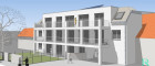- Wohnhaus mit 3 oberirdischen Geschossen, 14 WE, WNF ca. 870 m2 + Balkone, Terrassen und Gärten